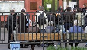 Очередь за получением виз у здания Консульского отдела Посольства Латвии.