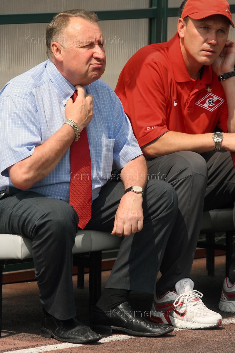 Чемпионат России по футболу. Главный тренер команды "Спартак" Владимир Федотов (слева) наблюдает за…