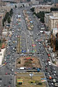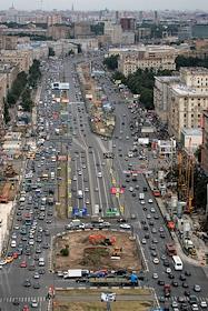 Вид на Ленинградский проспект из окна института "Гидропроект". Автомобильный поток и зона…