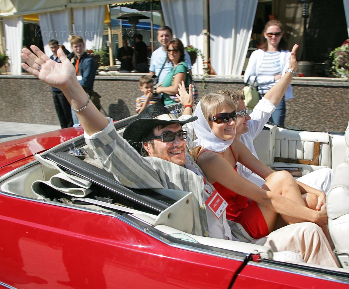 Телеведущая Тина Канделаки во время женского ралли на классических автомобилях. Сбор участниц, а…