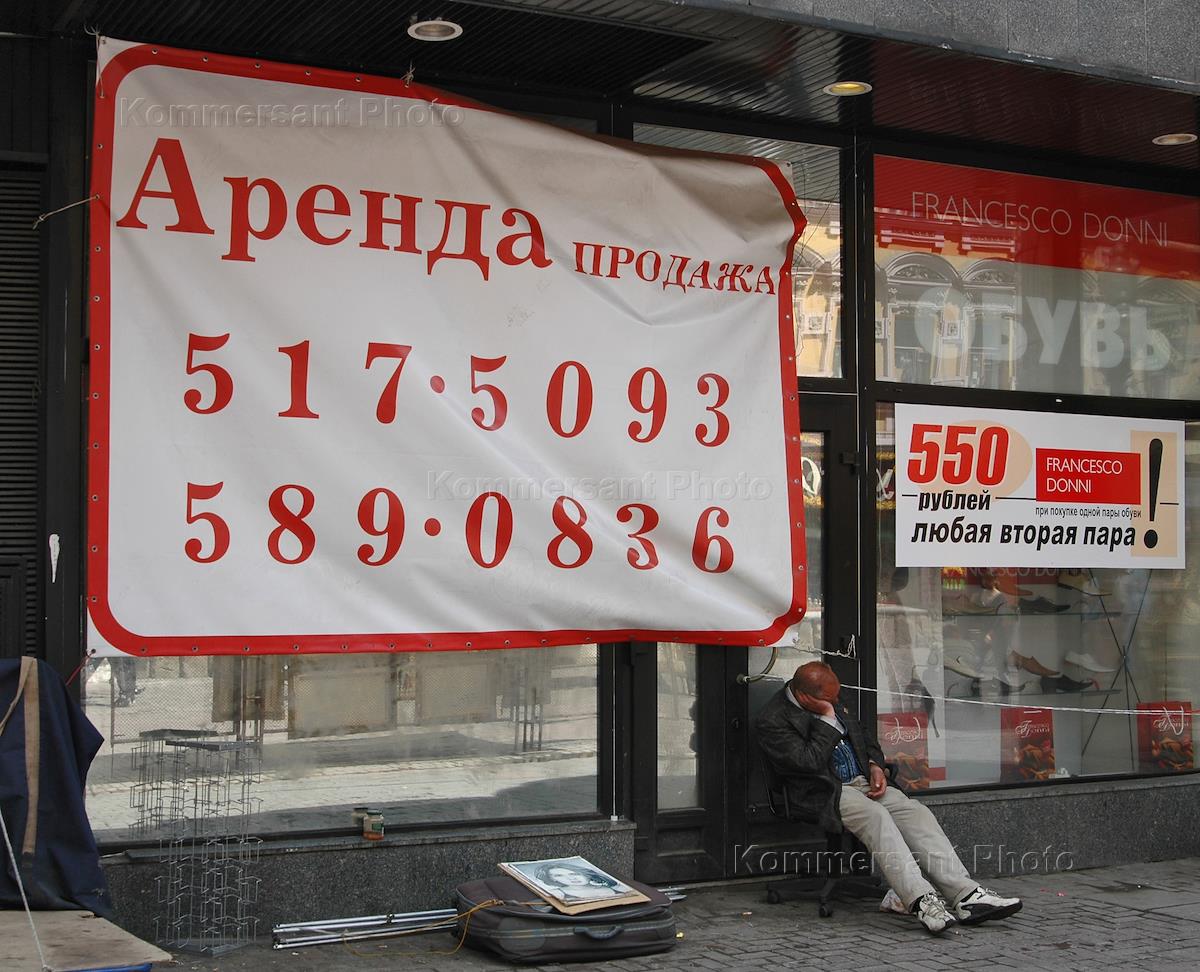 Реклама аренды на витрине магазина.