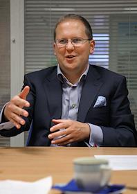 Президент "TELE2 Россия" Карл-Магнус Стенберг во время интервью в своем рабочем кабинете.