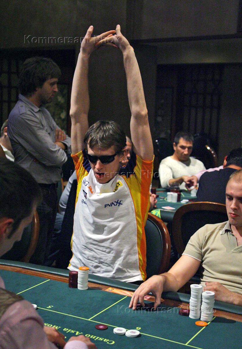 Победитель турнира по игре в покер Александр Кузьмин во время турнира в казино "Азия".