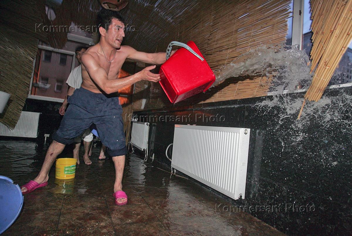 Последствия тушения пожара дома № 7 по улице 1-я Тверская-Ямская. Люди вычерпывают ведрами воду…