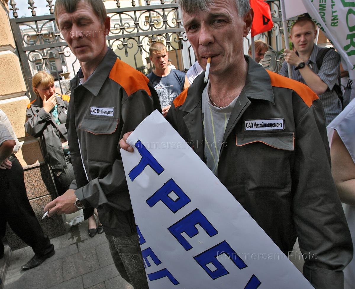Экономика и бизнес Пикет в поддержку рабочих ОАО "Михайловцемент" (Рязанская область), объявивших бессрочную забастовку, с требованием об увеличении оплаты труда, у здания ОАО "Евроцемент групп".