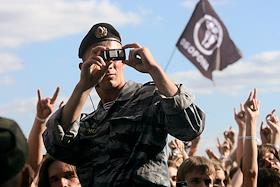 Международный музыкальный фестиваль "Крылья" на поле аэродрома Тушино. Сотрудник правоохранительных…