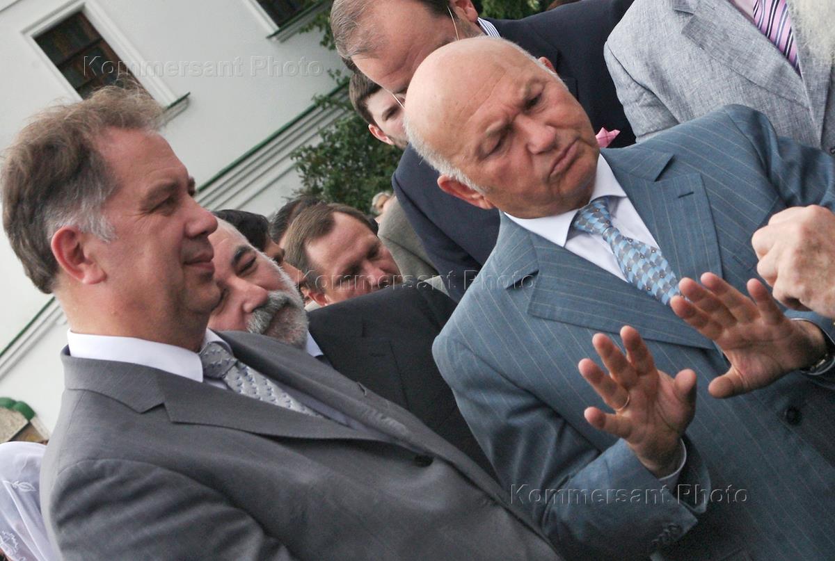 Мэр Москвы Юрий Лужков (слева) и министр культуры и массовых коммуникаций России Александр Соколов…