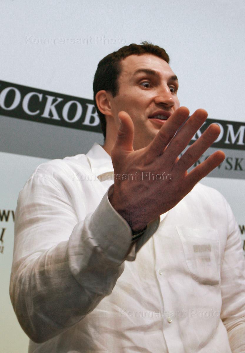 П/к боксера-супертяжеловеса, чемпиона мира по версии Международной боксерской федерации В. Кличко в пресс-центре "МК".