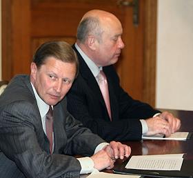 Первые заместители председателя Правительства России Сергей Иванов (слева) и Дмитрий Медведев…
