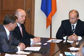 Председатель Правительства России Михаил Фрадков (в центре), его первый заместитель Сергей Иванов…