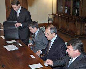 Министр иностранных дел России Сергей Лавров во время совещания с участием Президента России…