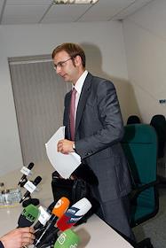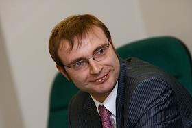 Вице-президент Фондовой биржи РТС Роман Горюнов во время пресс-конференции руководства ОАО "Фондовая…