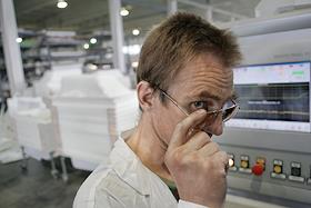 Рабочий в цехе производства джакузи.