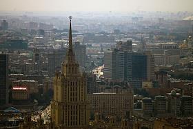 Вид Москвы с небоскреба "Федерация" бизнес-центра "Москва-Сити". Гостиница "Украина".