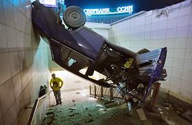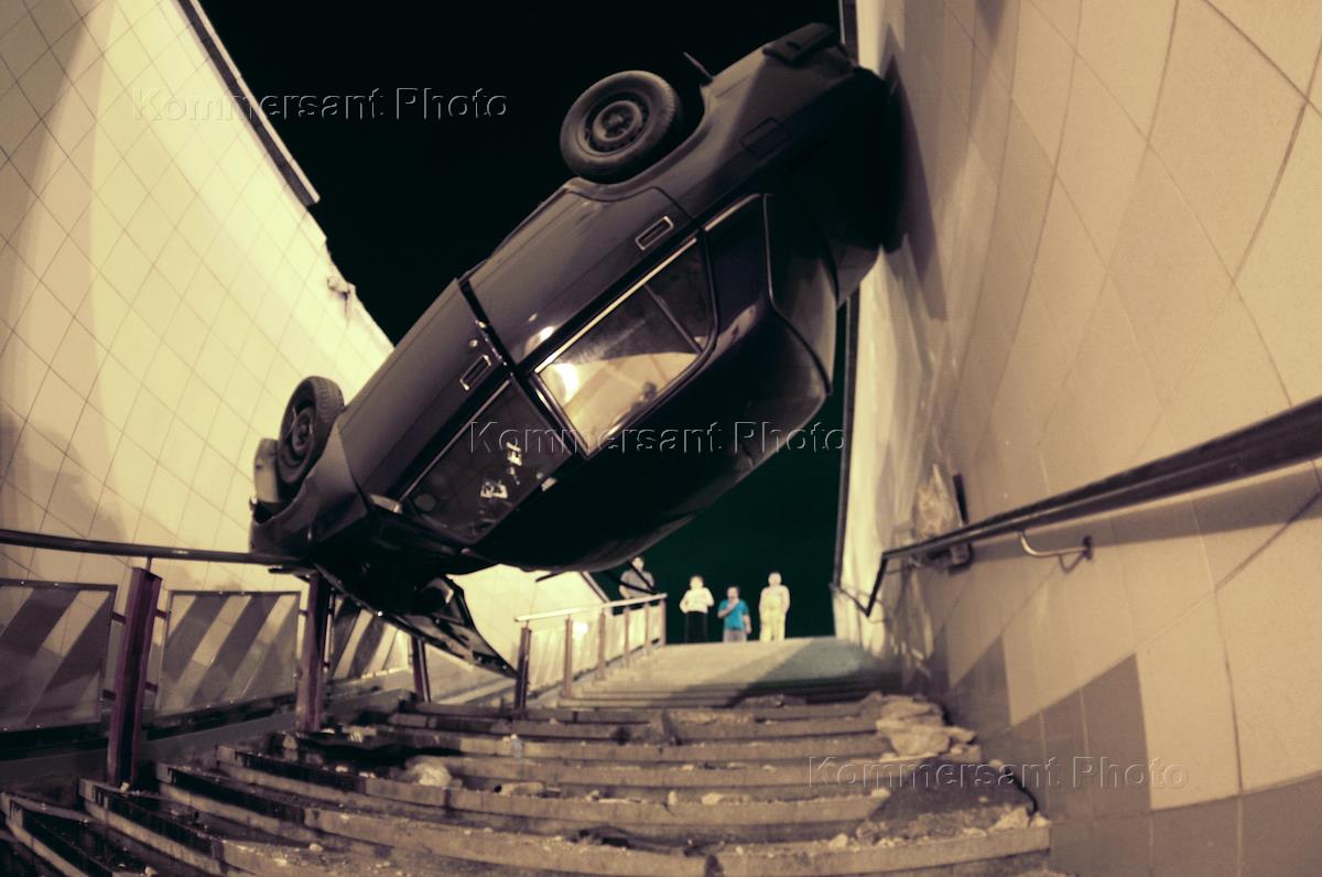 Подборка. Съемка из личного архива. Автомобиль упал в подземный переход.