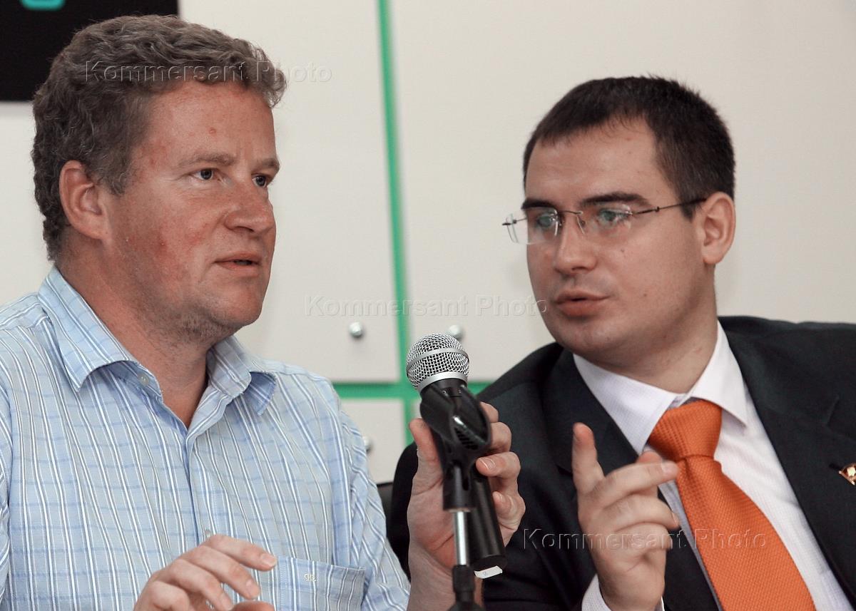 председатель ЦК Союза коммунистической молодежи (СКМ) Константин Жуков (слева) и второй секретарь ЦК…