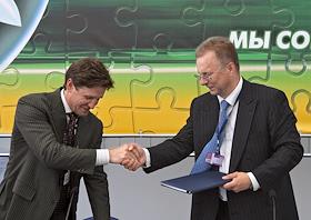 Генеральный директор авиакомпании "ГТК России" Серегей Михальченко (слева) и генеральный директор…