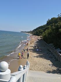 Люди отдыхают на городском пляже на Балтийском море.