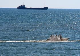 Пляжные развлечения. Отдыхающие катаются на "банане".