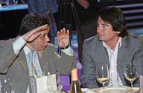 Певица Наташа Королева (слева) и пресс-секретарь мэра Москвы Сергей Цой (справа) на праздновании…