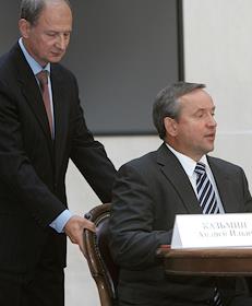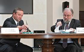 Председатель правления "Сбербанка России" Андрей Казьмин (слева) и председатель Центральной…