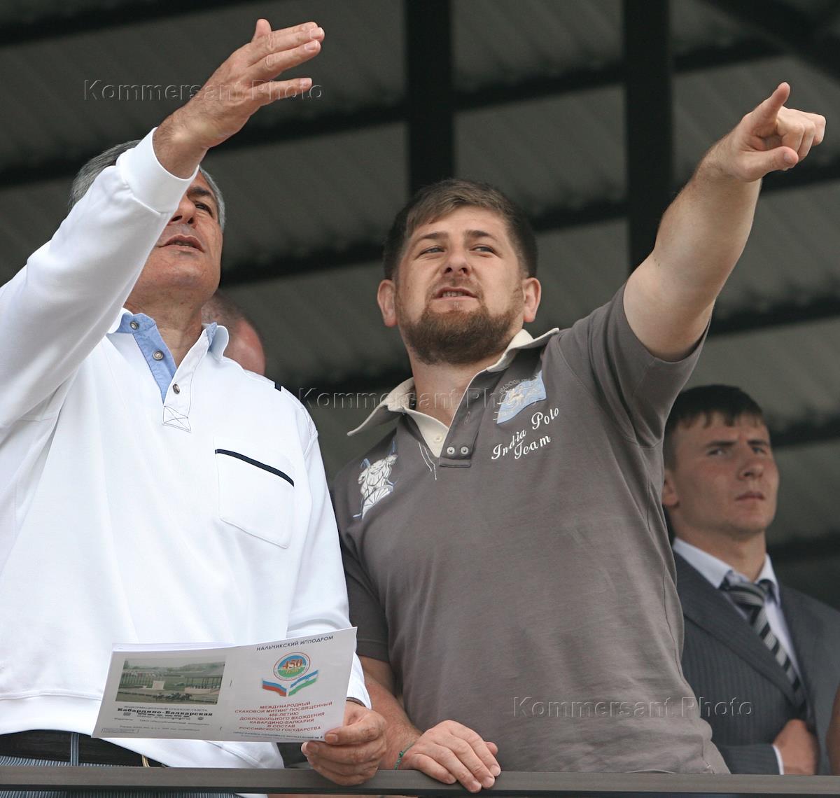 Президент Кабардино-Балкарии Арсен Каноков (слева) и президент Чеченской республики Рамзан Кадыров…