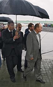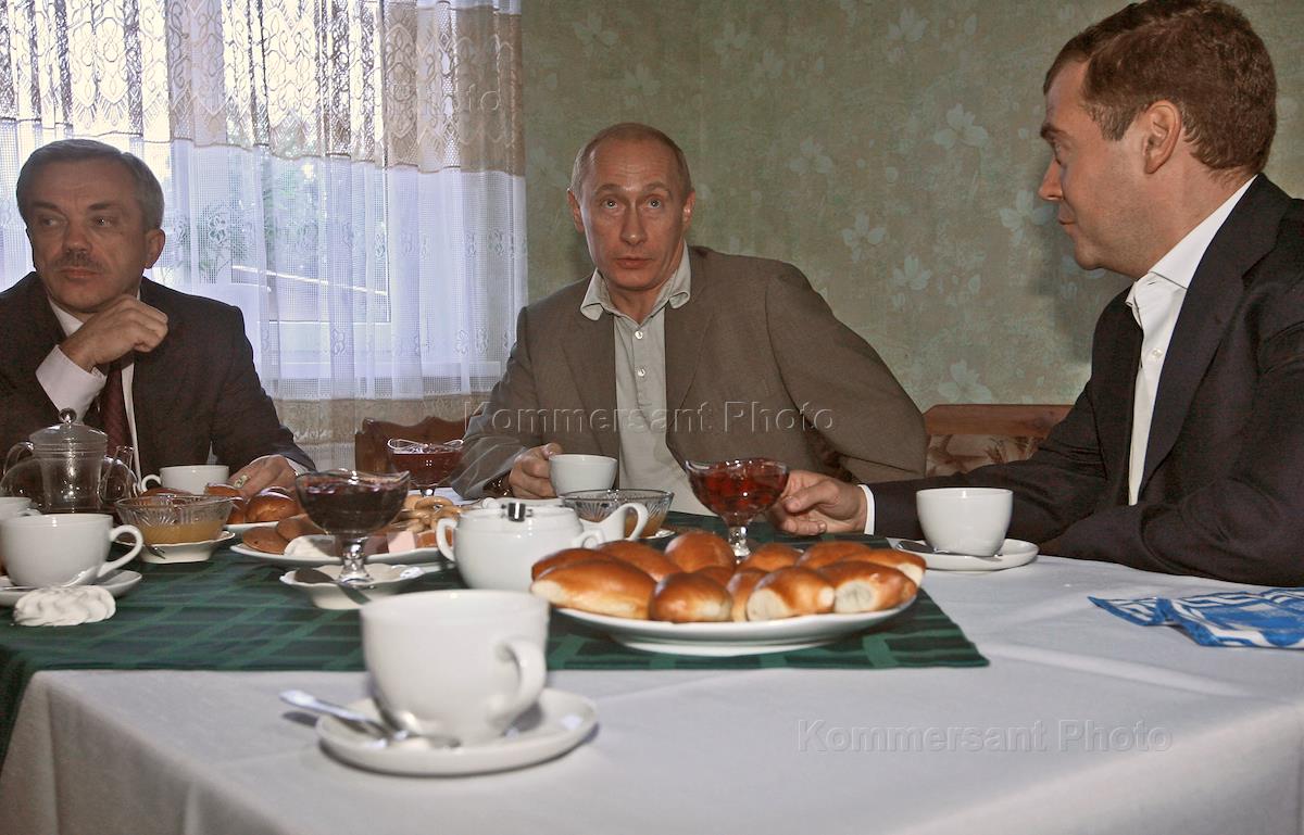 Губернатор Белгородской области Евгений Савченко (слева), Президент России Владимир Путин (в центре)…