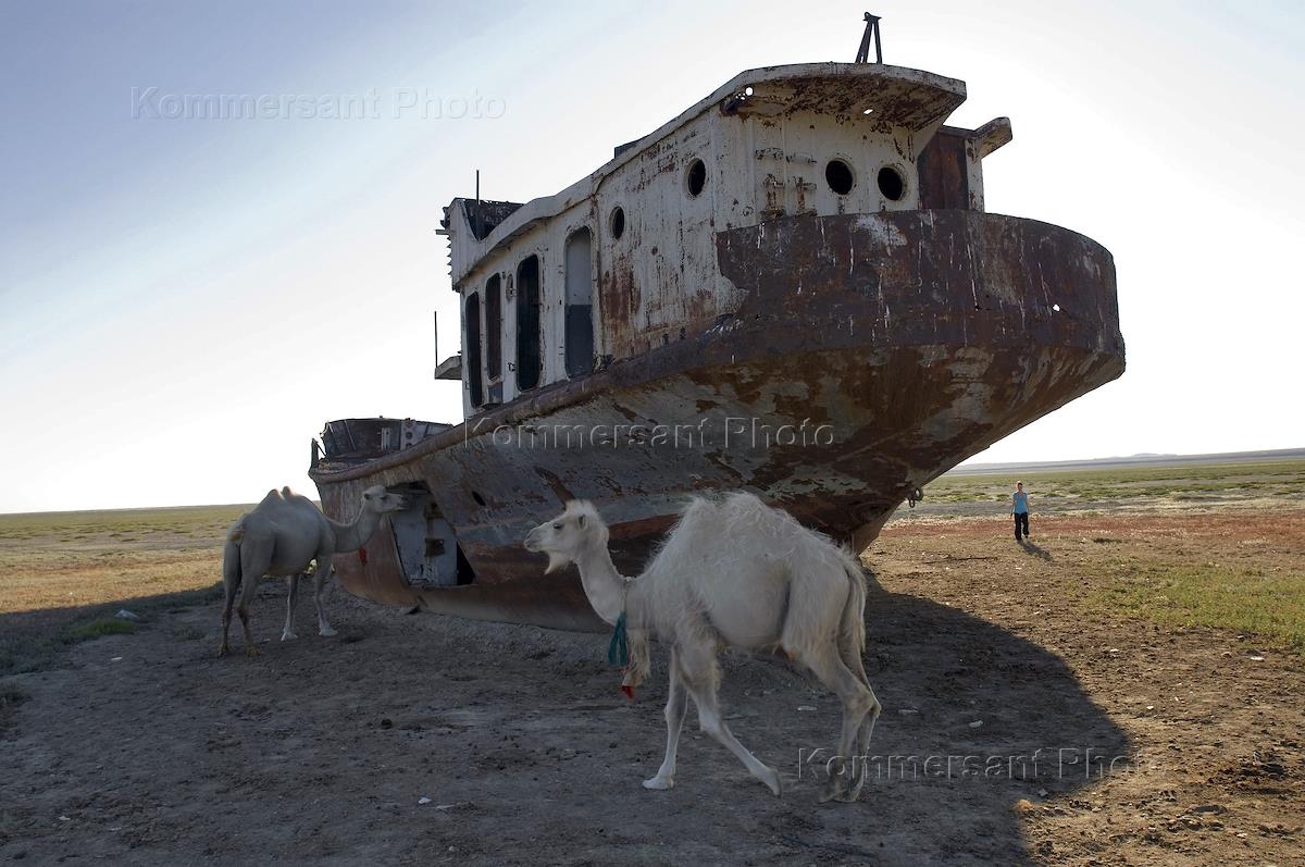 Верблюды на кладбище кораблей недалеко от Джамбула.
