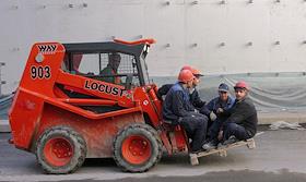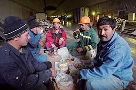 Рабочие на строительстве Серебряноборского тоннеля во время обеденного перерыва.