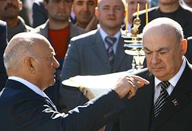 Мэр Москвы Юрий Лужков (слева) и генеральный директор компании "СТ Девелопмент" Шалва Чигиринский…