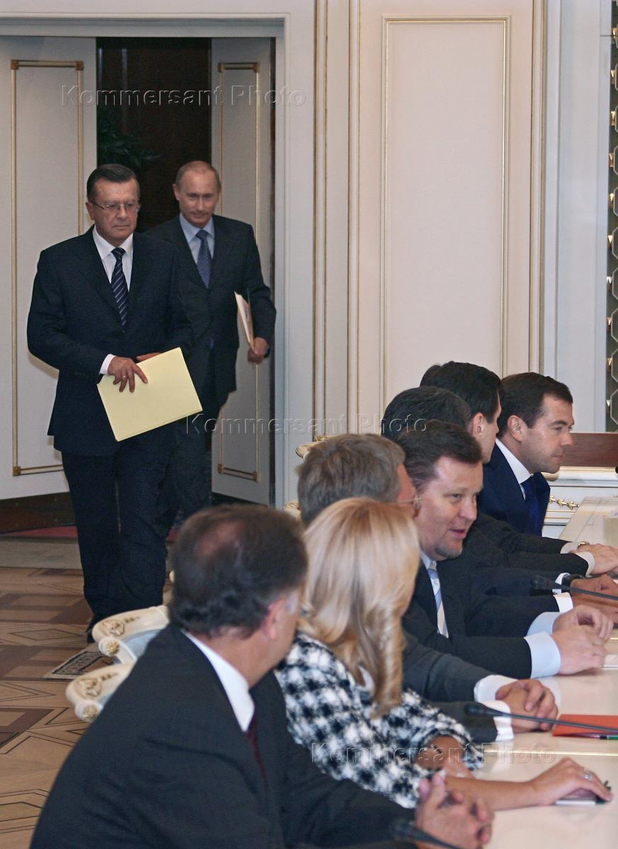 Председатель Правительства России Виктор Зубков (слева), Президент России Владимир Путин (в центре)…