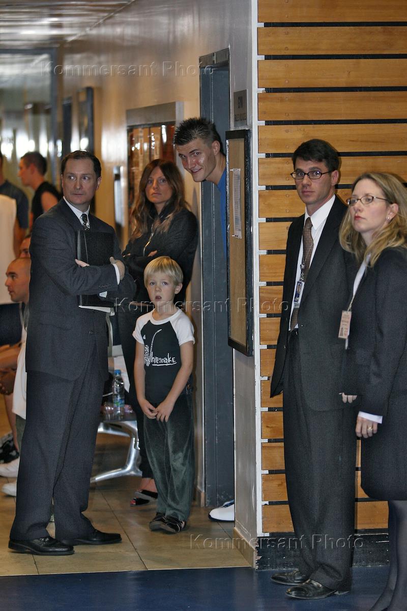 Чемпион "Европы-2007" по баскетболу Андрей Кириленко (в центре) перед началом проведения…