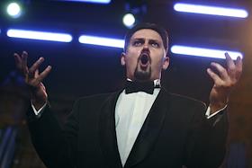 Певец Михаэль Фоле во время выступления на вечере памяти итальянского певца Лучано Паваротти "Ее…