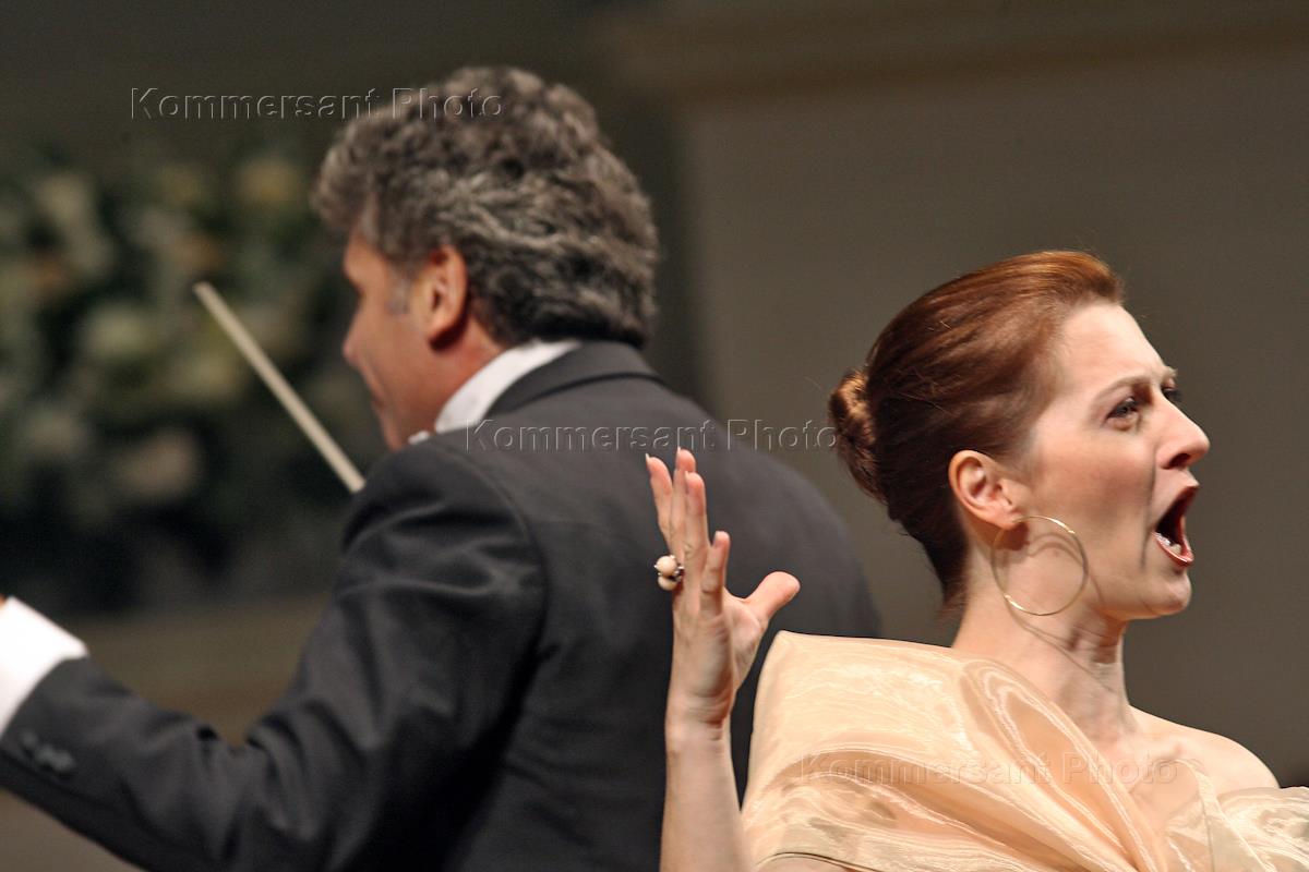 Итальянская оперная певица Патриция Чьофи (слева) и итальянский дирижер Лучано Акочелло (справа) во…