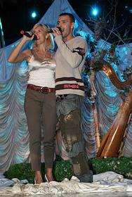 Солист группы "Vacuum" Матиас Линдблом (слева) и участницы телепроекта "Фабрика звезд - 7" Наталья…