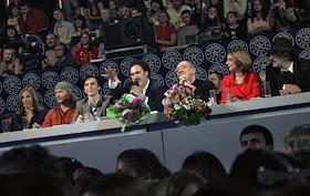Участница телепроекта "Фабрика звезд - 7" Корнелия Манго (слева) и певец Валерий Меладзе (справа) на…