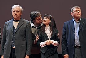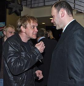 Актер Михаил Горевой (слева) во время премьеры фильма "День выборов" в кинотеатре "Октябрь".