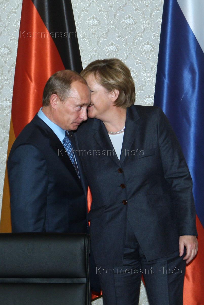 Президент России Владимир Путин (слева), канцлер Германии Ангела Меркель (в центре) и экс-президент…