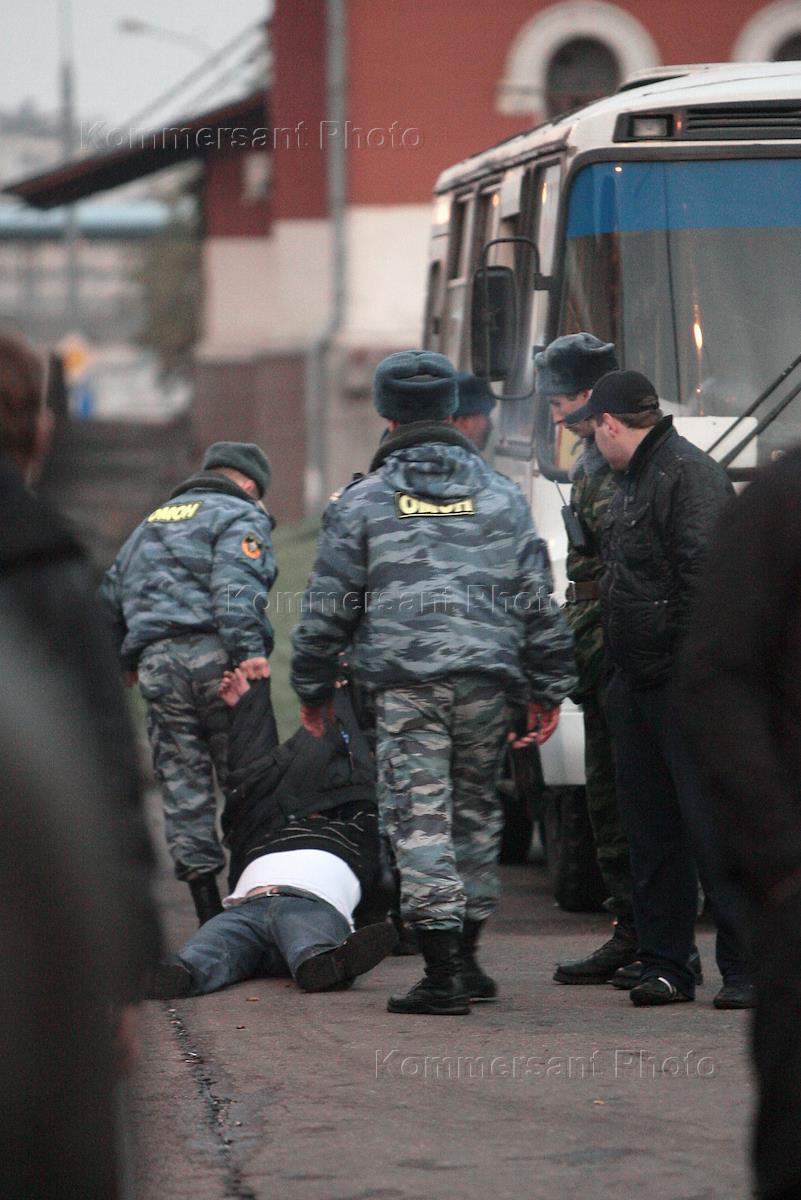 Болельщики в день отборочного матча Россия - Англия у стадиона "Лужники". Сотрудники…