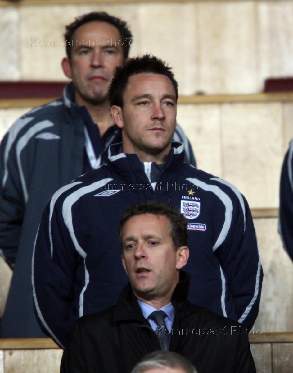 Отборочный матч по футболу "ЕВРО-2008". Игрок сборной команды Англии Рио Фердинанд (слева) и игрок…