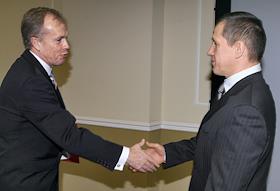 Министр природных ресурсов России Юрий Трутнев (справа) и его заместитель Анатолий Темкин (слева) на…