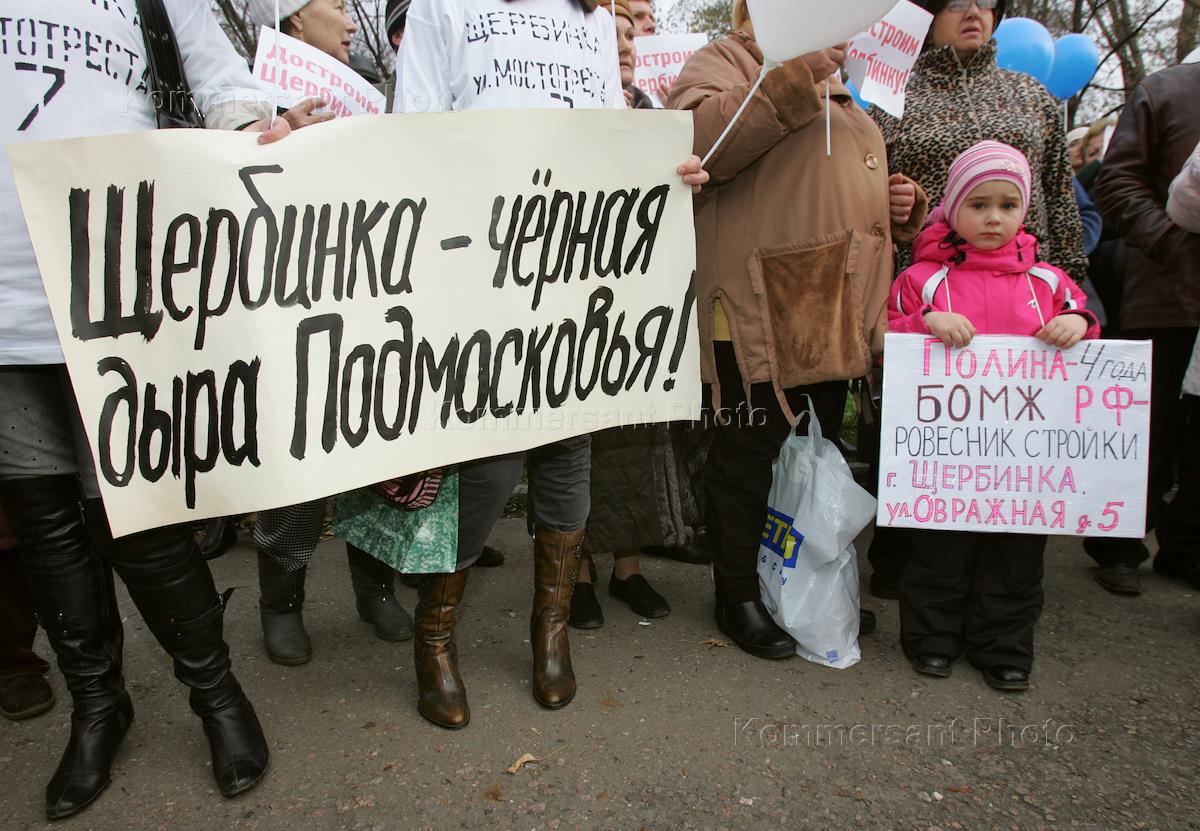 Митинг семей дольщиков строительного объекта г. Щербинка на "Горбатом мосту" у Дома правительства РФ.
