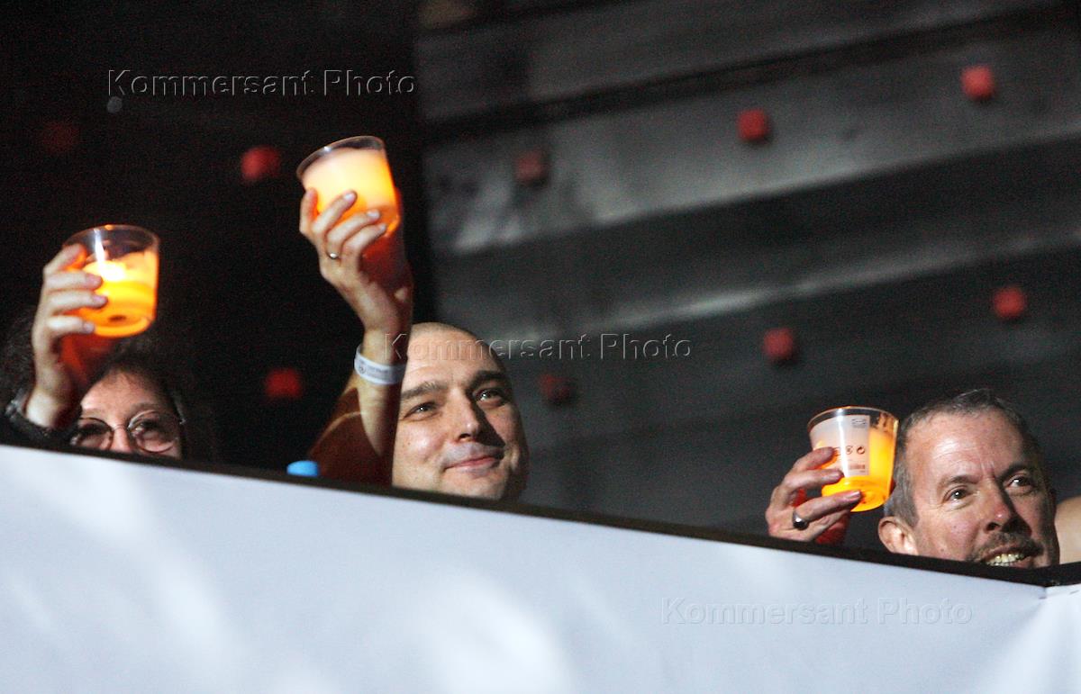 Участники группы "Animal Jazz" и солист группы "Моральный кодекс" Сергей Мазаев (справа) во время…