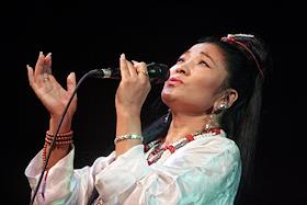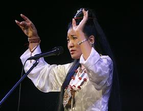 Тибетская певица Юнгчен Ламо во время концерта в Московском Международном Доме Музыки.
