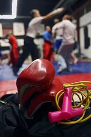 Спортивная секция по кик - боксингу. Тренировка женской команды.
