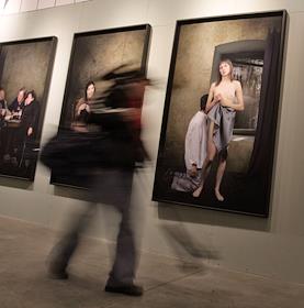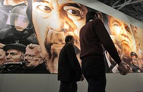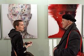 Посетители на выставке номинантов Премии Кандинского 2007 года. Выставка прошла в выставочных залах…