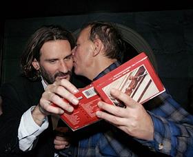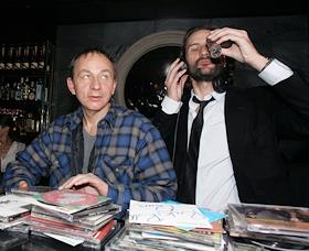 Писатели Фредерик Бегбедер (справа) и Мишель Уэльбек (слева) во время dj-сета в "GQ баре".