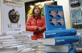 Продажа книг французских писателей Фредерика Бегбедера и Мишеля Уэльбека в фотостудии "Eleven" в…