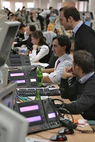 Сотрудники банка "Траст" в операционном зале.