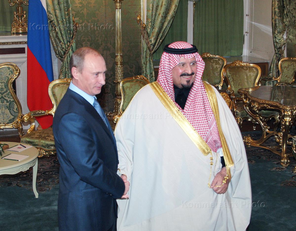 Политика Встреча Президента РФ Владимира Путина с наследным принцем, заместителем премьер-министра, министром обороны и авиации Саудовской Аравии Султаном бен Абдель Азизом Аль Саудом в Кремле.